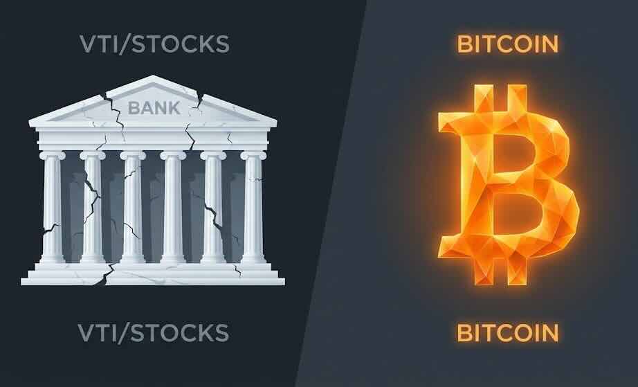 In the short term, yes. VTI is less likely to drop 50 percent in a month. But in the long term, VTI carries debasement risk that Bitcoin does not.